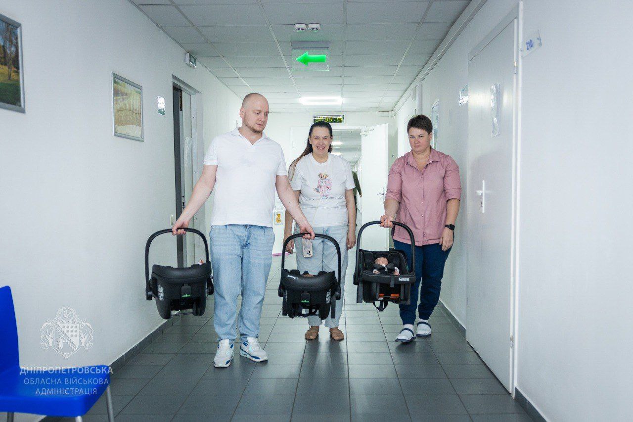 Днепряне Анна и Сергей теперь папа и мама сразу троих мальчишек. Своих казаков назвали Артемом, Тимуром и Назаром. Каждый родился около двух килограммов.